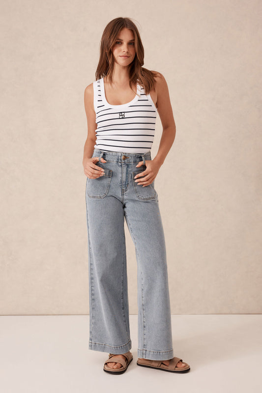 Wide Leg Front Pocket Jean Vintage Blue
