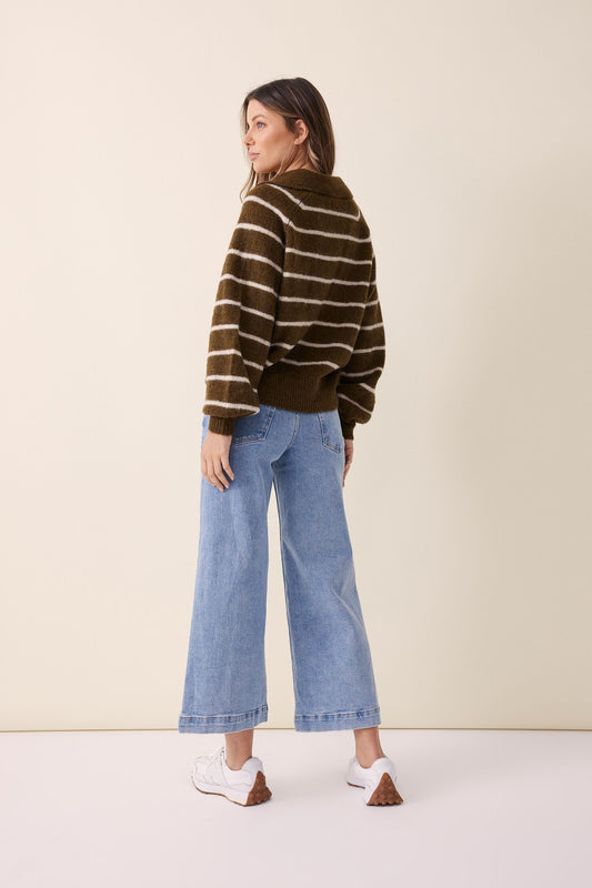 Collared Knit Alpaca Olive Birch Stripe