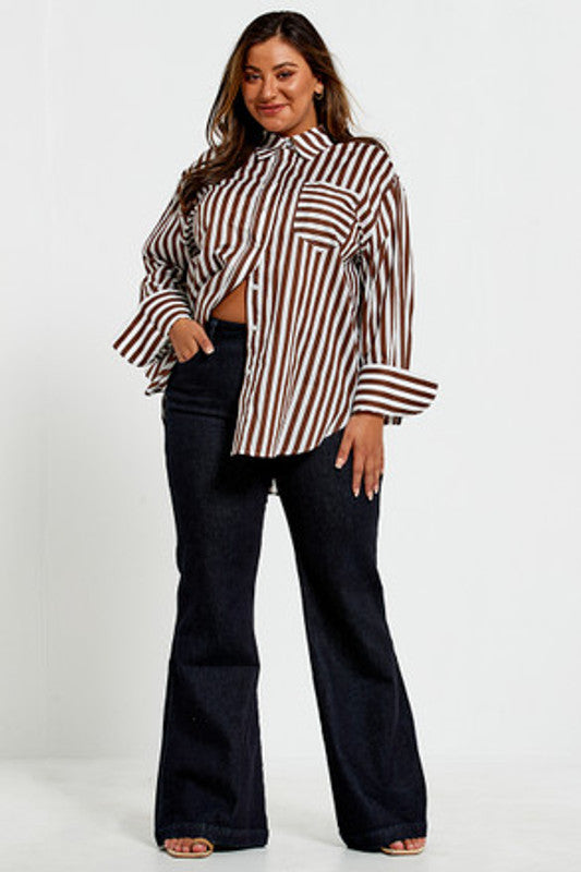 Classic Button Down Shirt Brown Stripe