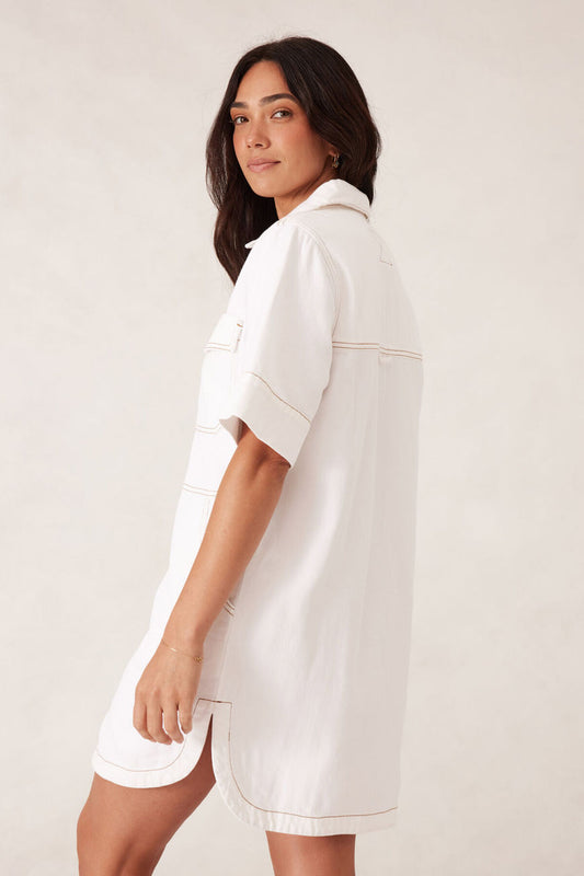 Sold outSide Pocket Boxy Shirt Dress Ecru