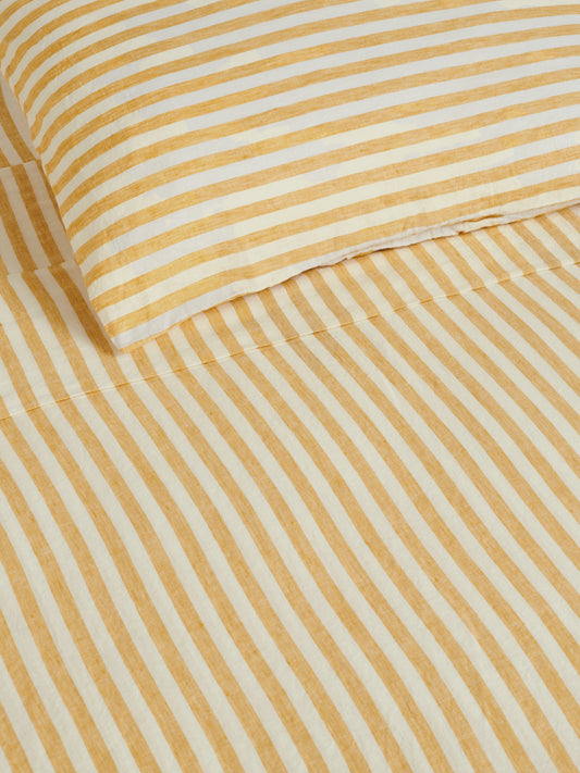 100% Linen Pillowcase Set of 2 Yellow Stripe