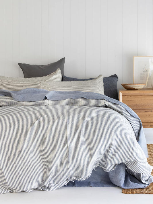 100% Linen Pillowcase Set of 2 Blue Stripes