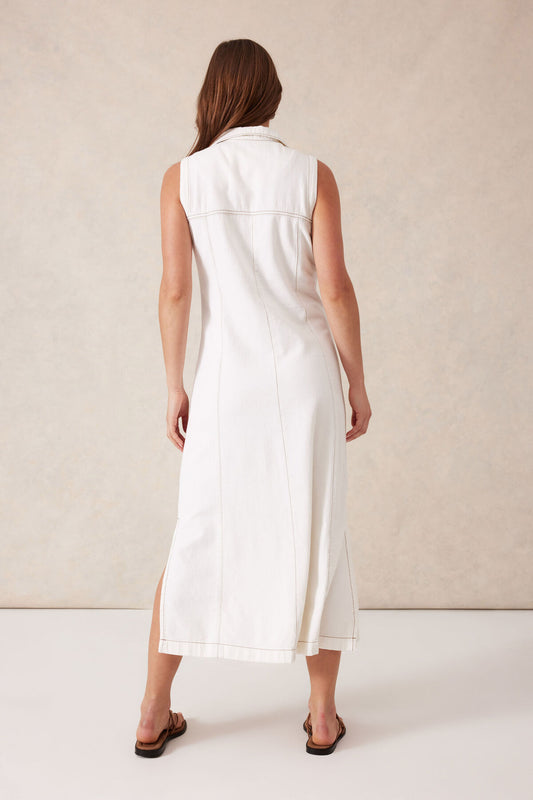 Sleeveless Panelled Midi Shirt Dress Ecru
