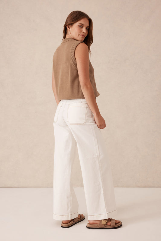 Wide Leg Front Pocket Jean Ecru