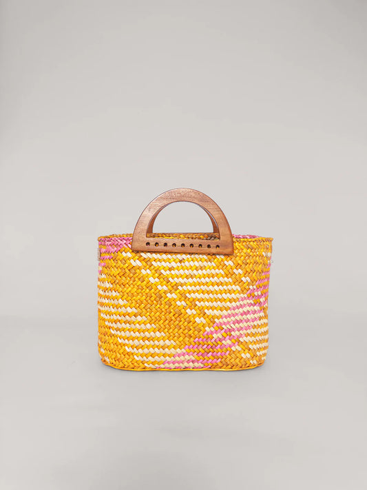 The Sophia - Washed Yellow and Pink with Wooden Handles