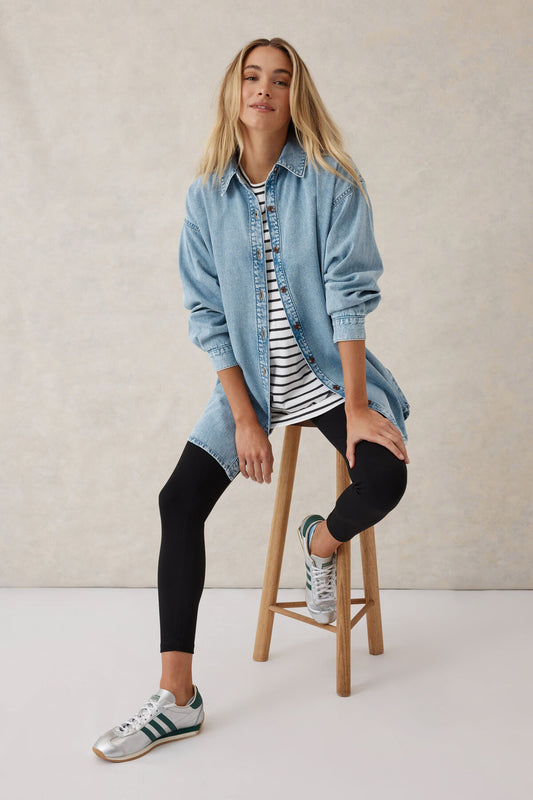 Slouchy Split Hem Tee Vanilla Navy Stripe