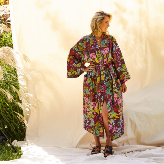 Long Natural Robe ~ Palm Hand Pressed Motif
