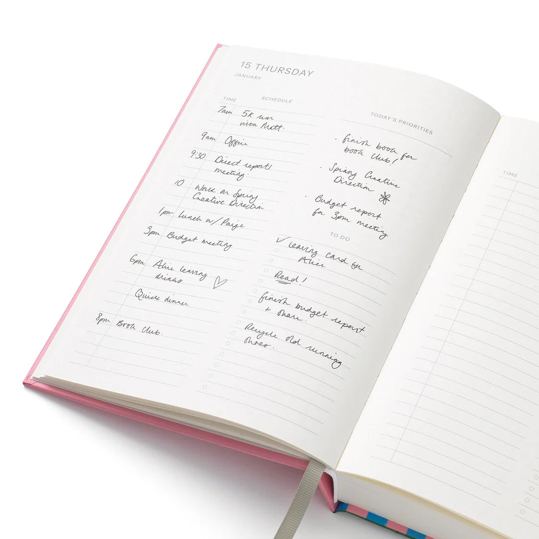 Features weekly views, monthly goal-setting and habit-tracking, contacts pages and notebook pages