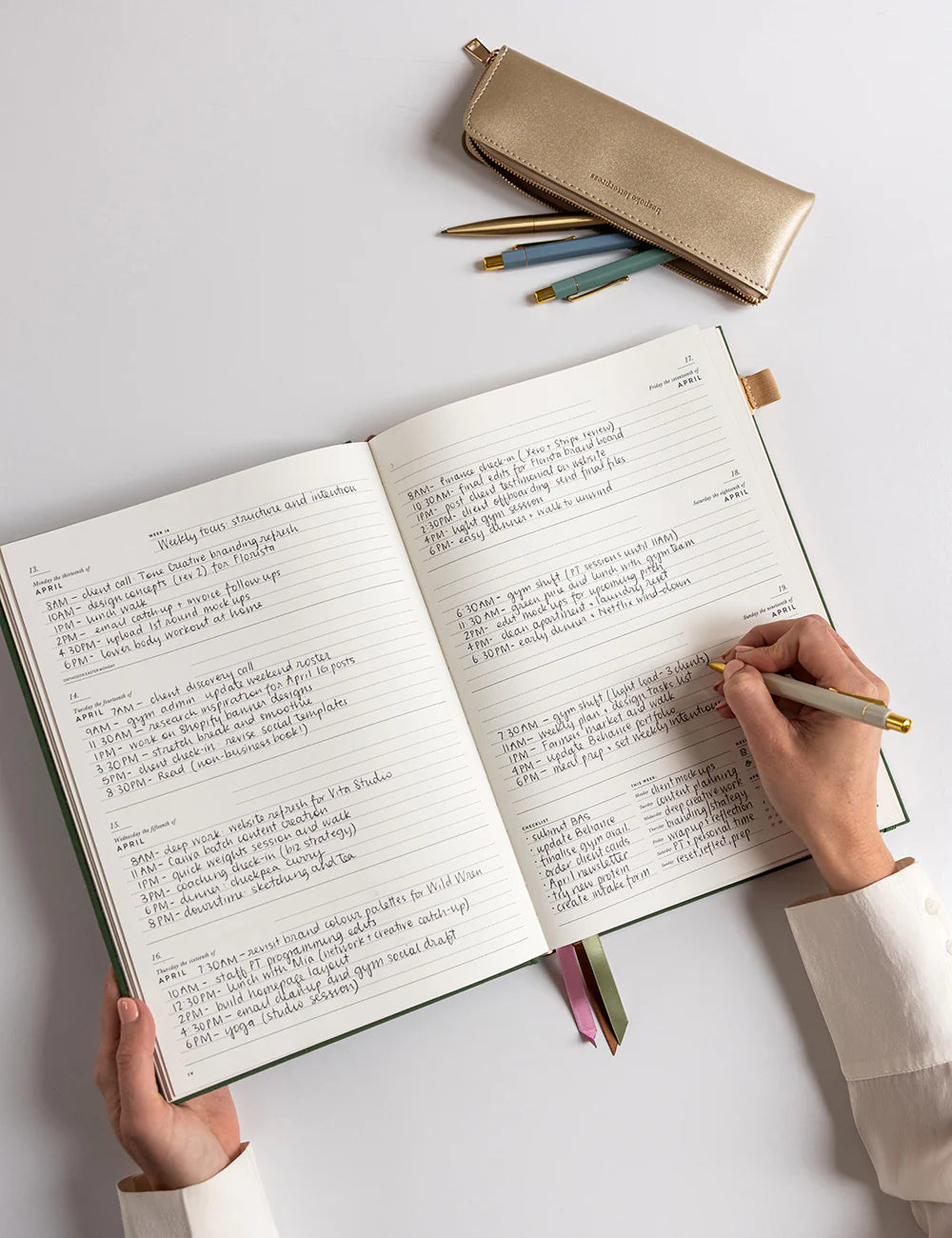 - Perfect bound allowing the planner to lay flat when writing