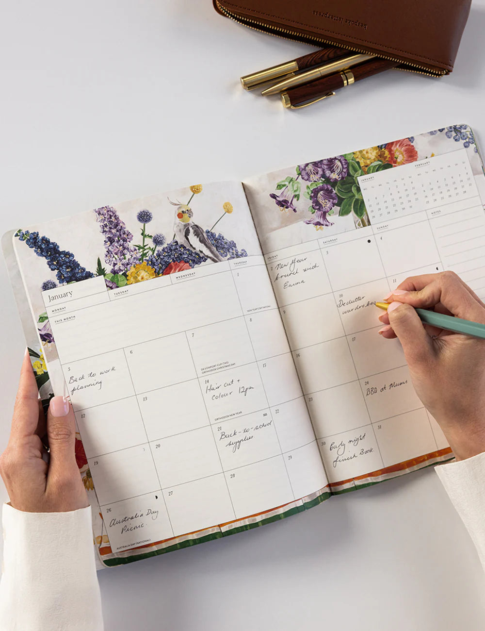 - Monthly Calendars with Australian public holidays, important date reminders (eg Valentines Day, Mother's Day etc), Moon cycles, Solaces and Equinoxes, and Horoscopes. (24 pages - one spread per month)