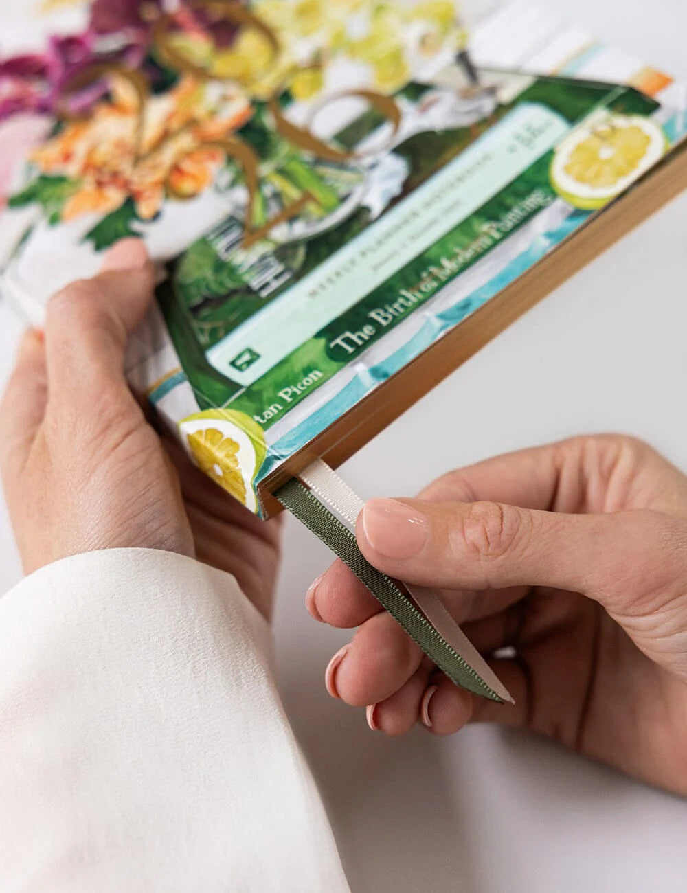 Our Planner Notebooks feature lay-flat binding, where the cover isn’t attached to the spine - allowing the pages to open flat. This format typically doesn’t allow for ribbon markers, but we’ve thoughtfully designed a solution by strategically placing them within the page spine for a seamless and practical finish.