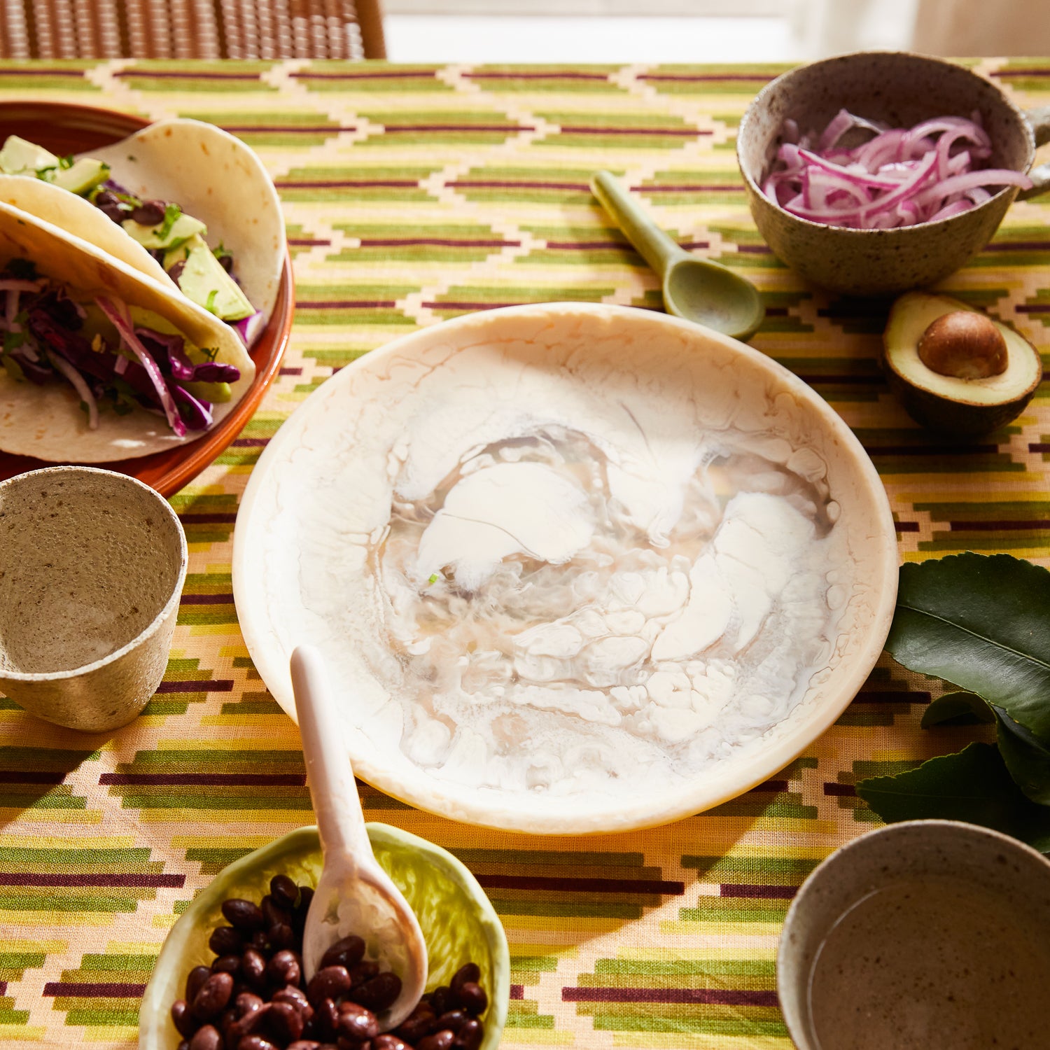 Perfectly sized, our Aamin mini platter is ideal for antipasti boards and mezze dishes. Each piece is poured and swirled by hand, delivering that coveted one-of-a-kind feel.