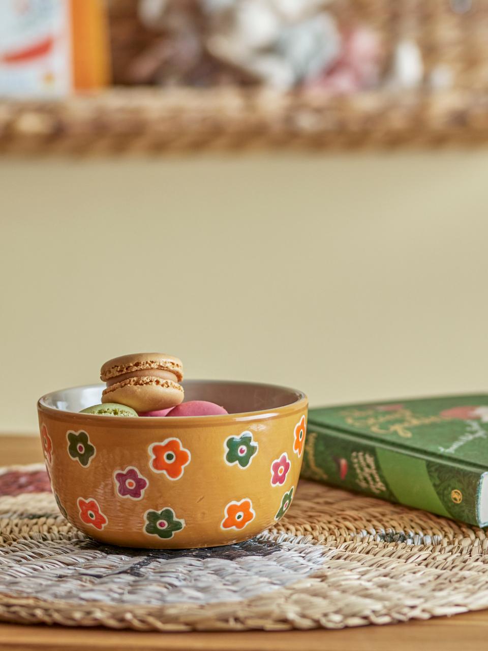 The Addy Bowl by Bloomingville MINI comes in a light brown shade and showcases a cozy design with hand-painted flowers in warm tones, making each serving a bit more special. It's ideal for breakfast but also perfect for serving sweet and salty snacks. With its perfect size for children, it will no doubt become a hit at the dining table. Each bowl will be unique as every brushstroke adds a personal touch and creates slight variations in the design.