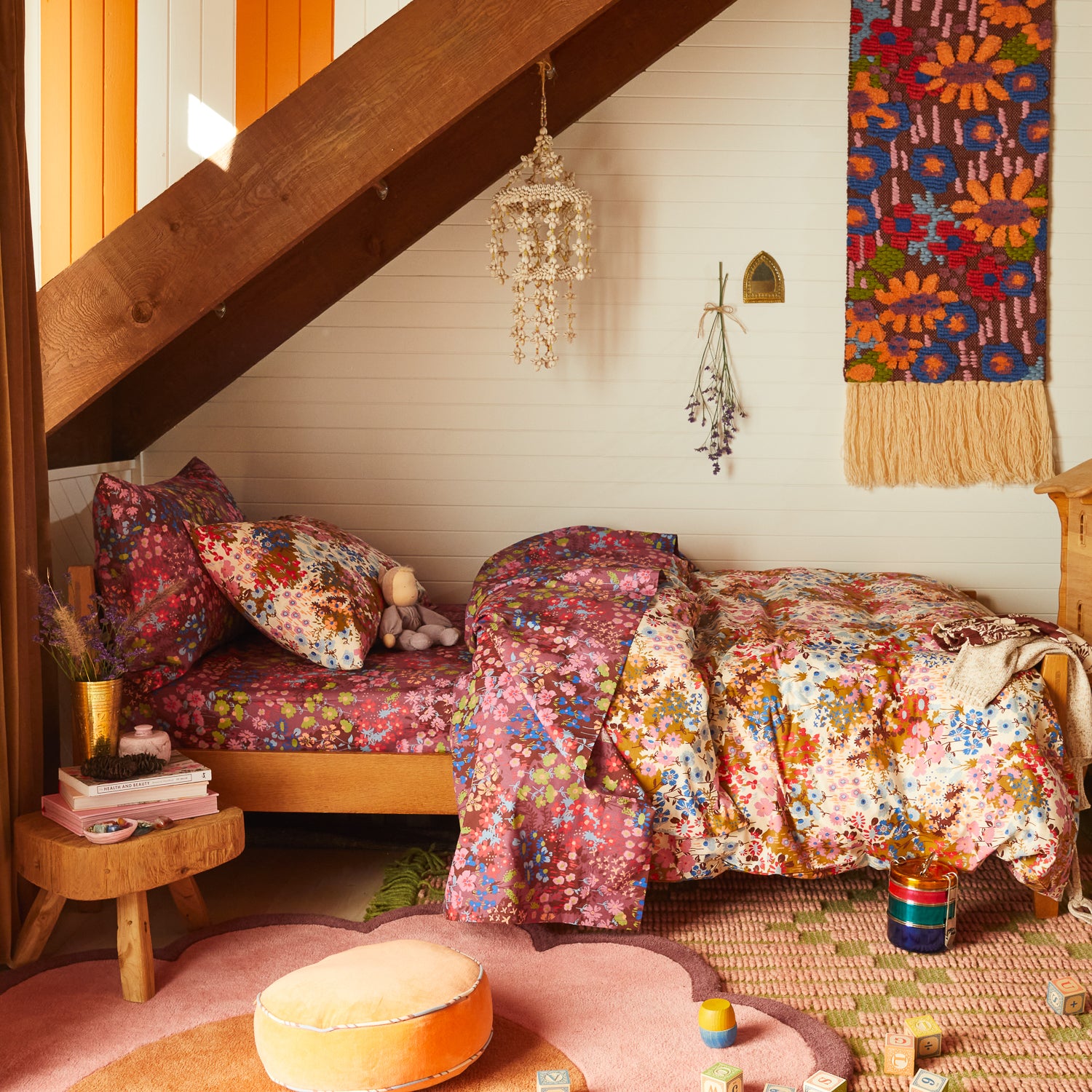 “Like wildflowers in the desert, our Aisha sheets withstand the passing of time in their subtle beauty. The colourful blooms are soft and sweet, like a sunset over the horizon”. – Phoebe’s Style Notes