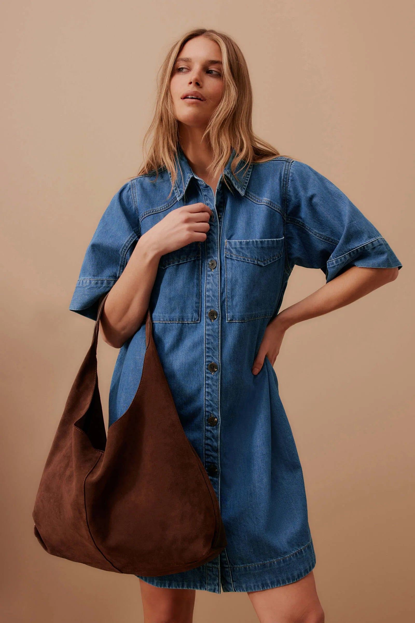 Meet our Short Sleeve Yoke Detail Mini Dress - a staple for your wardrobe. This style is boxy and more relaxed so size down if you prefer a slimmer fit. Crafted from 100% organic cotton lightweight denim, this dress features a unique curved yoke and sleeve seam design, short sleeves, a functional button-through front, and a playful mini length with side splits. It’s the perfect combo of relaxed and feeling easily put together for all the beach days ahead.