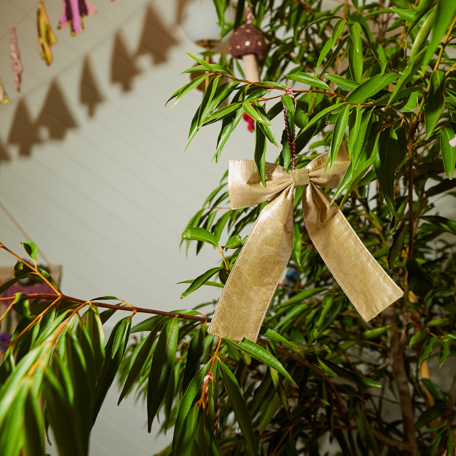 "Shimmering in a soft gold, allow the Bakra Bow to add a touch of sophistication and festive sparkle to your Christmas tree" - Phoebe's Style Notes