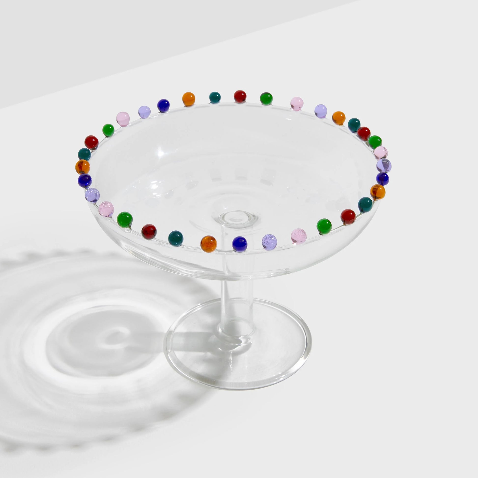 FAZEEK’s Bloom Stand takes entertaining to bold new heights. Clear glass meets vibrant personality with colourful, jewel-toned clusters that bloom across its sculptural form. Each piece is handmade and designed to impress—whether you're serving sweets, savories, or showing off fresh fruit, this stand turns any spread into a statement.