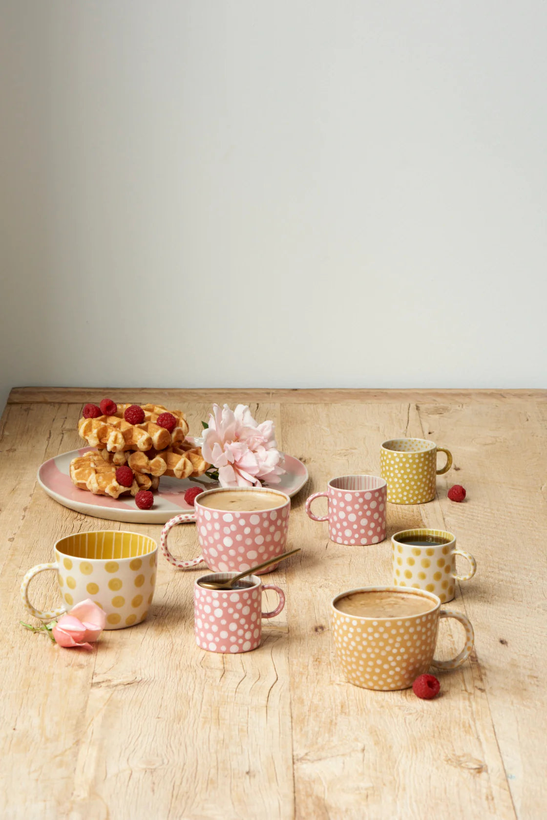 Meet our Chino Espresso Mustard Sprinkle, the latest addition to our cherished Chino mug family. Crafted from earthenware clay, this dainty mug comes in a warm mustard beige tone, adorned with whimsical spots and sprinkles. Bring a dash of charm to your espresso moments and elevate your daily routine with this delightful mug, where style meets substance in perfect harmony.
