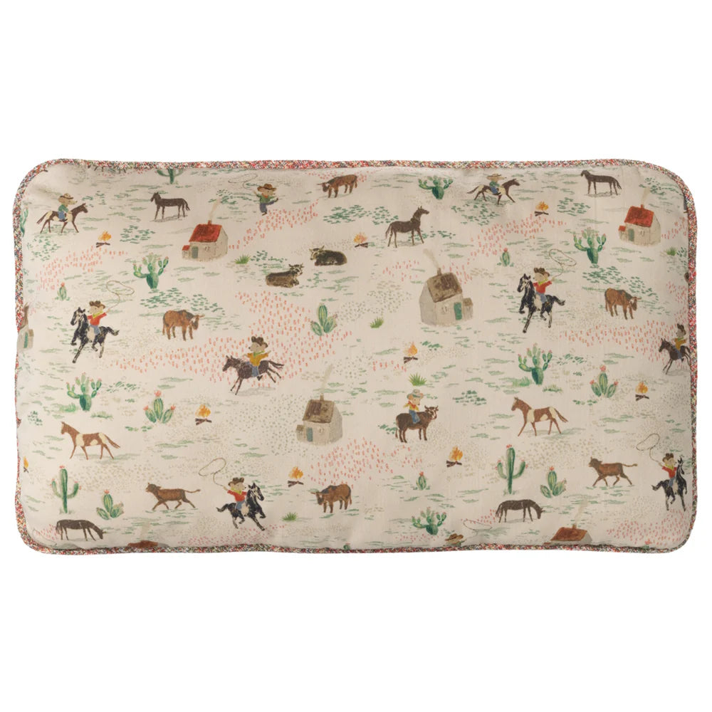 This rectangular cushion comes with the Cowboy print on side and a green checkered print on the other side. Decorative piping has been added around the cushion to complete the look. Measures 23cm x 39cm. Made of cotton with a polyester filling.