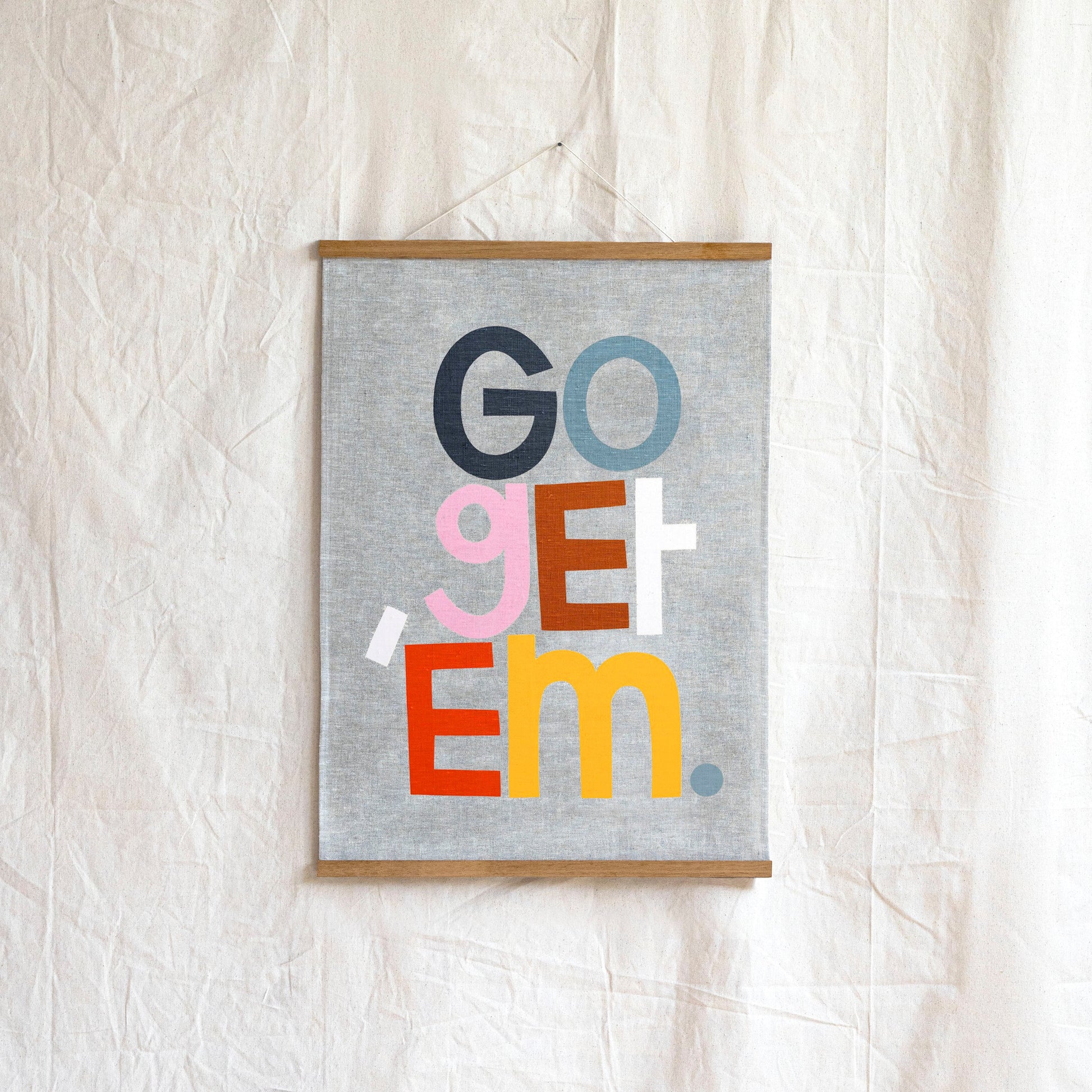 CASTLE 100% linen, printed in Australia, teatowel with hand embroidered Cx