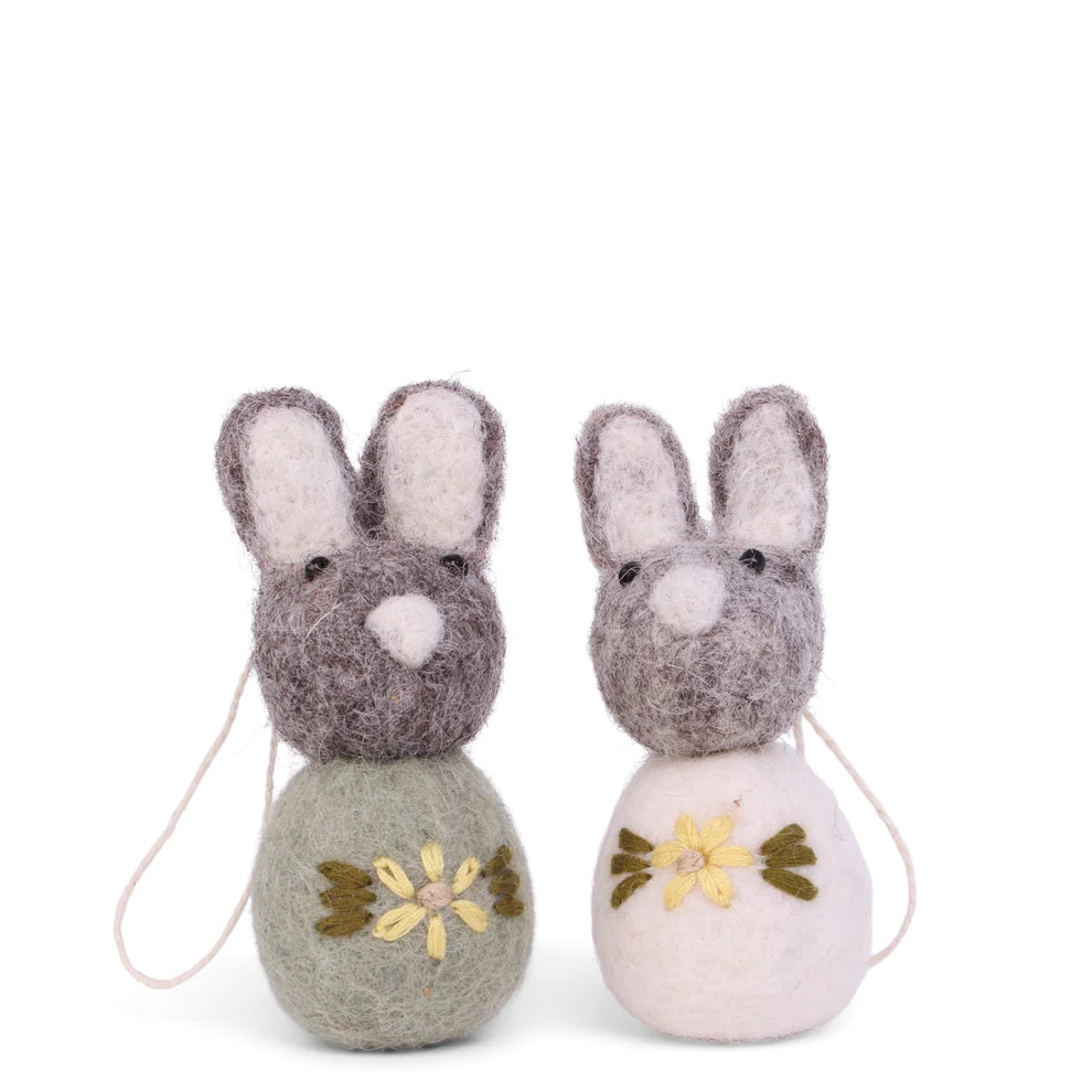 Grey Bunny Set Flower Green 2pk