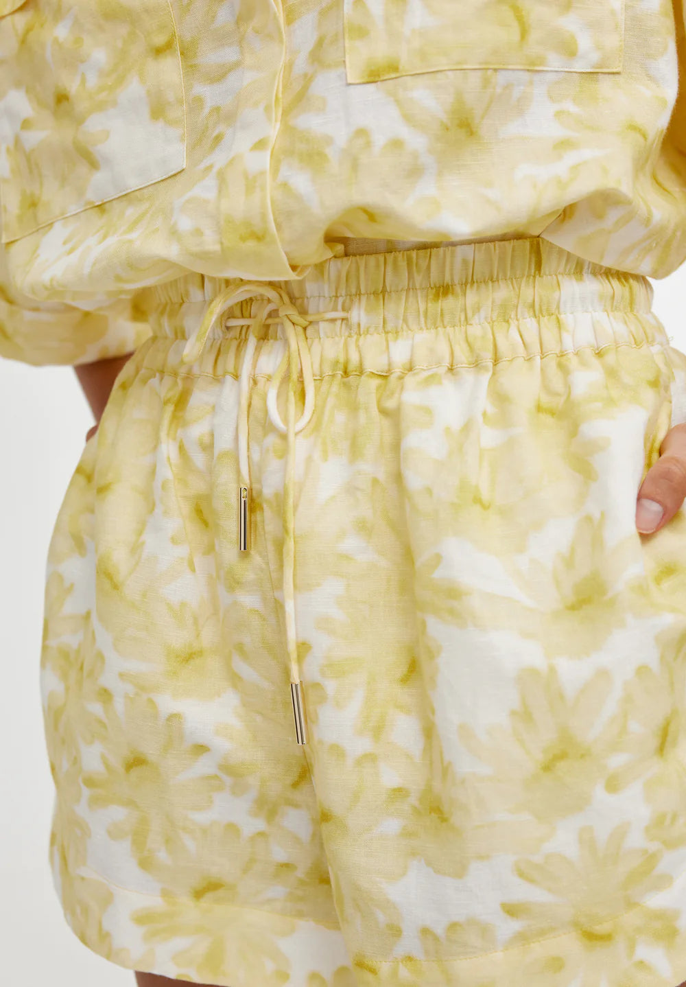 The Juniper Short in Daisy Haze is a high-waisted short crafted from a lightweight linen cotton blend. Featuring an elasticated drawstring waistband, in seam side pockets and back patch pockets. Designed for a relaxed fit, the shorts showcase a curved hem that effortlessly flatter the body and ensure comfortable wear. Style with the Juniper Shirt for an elevated co-ord summer look.