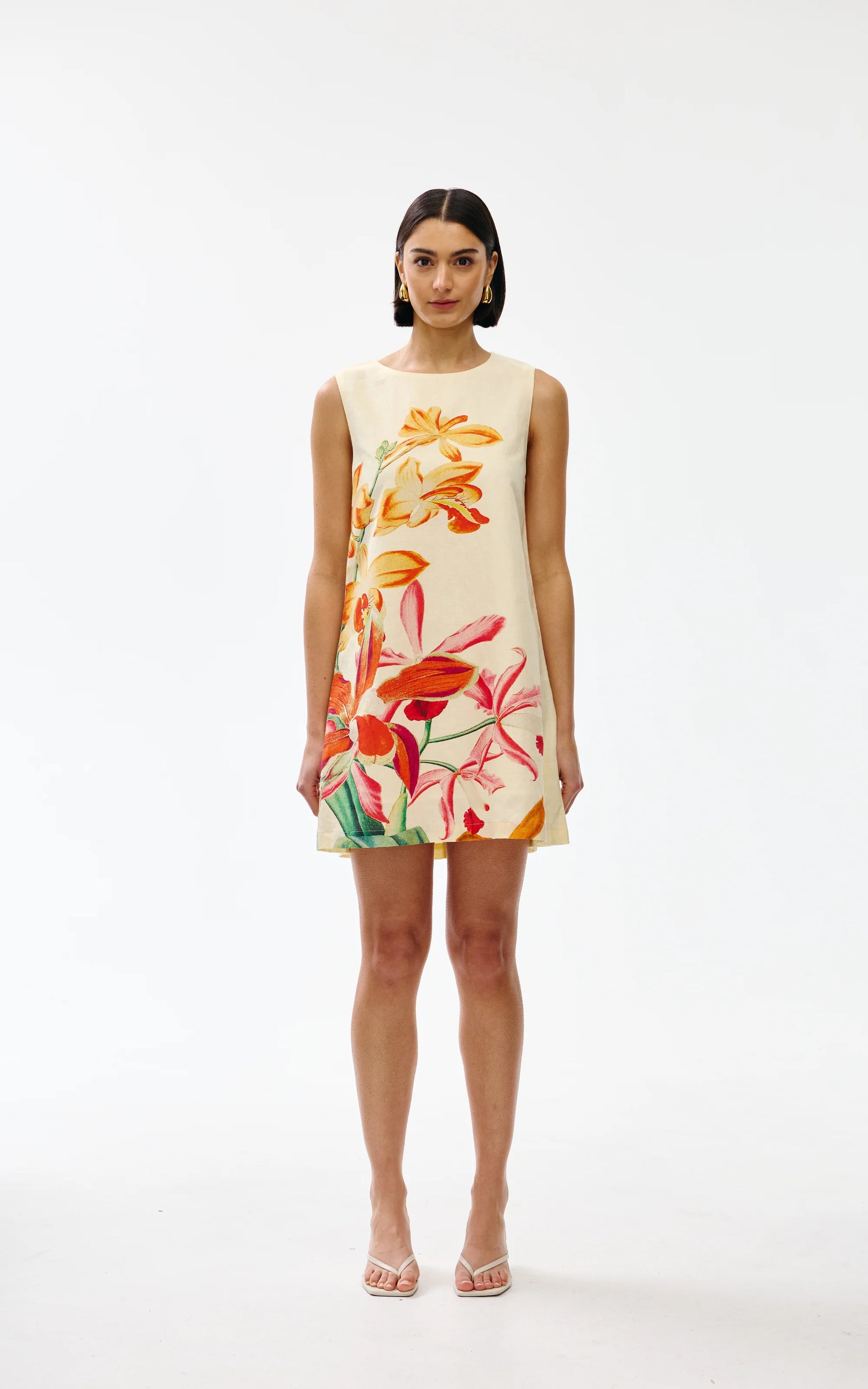 Now in our Positano print, this piece captures the vibrance of summer with its bold floral print in sunlit shades of yellow, orange, red, and pink.