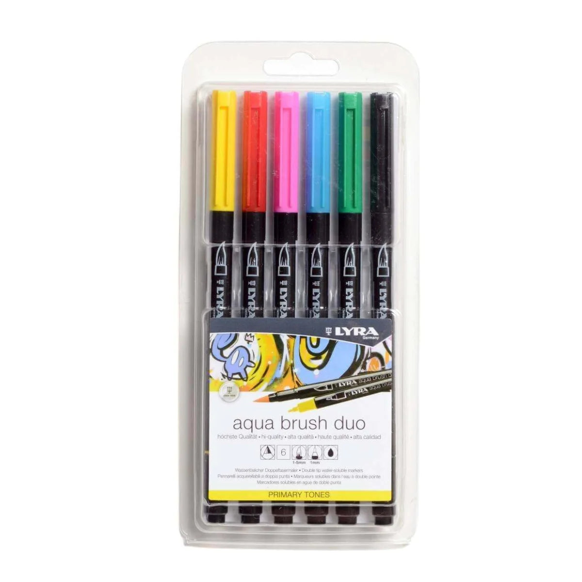 LYRA Aqua Brush Duo is an excellent quality dual-tip Marker Pen. Two ends, two styles, giving you the equivalent of 12 pens in the 6-pen set.