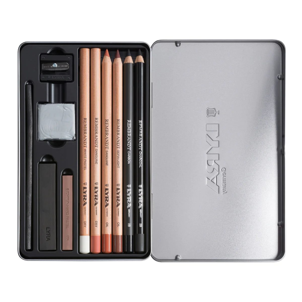 The LYRA Rembrandt Sketching Set contains an assortment of superior quality sketching pencils, pastels and a natural charcoal stick with extra strong 5mm leads and exceptional fluency.