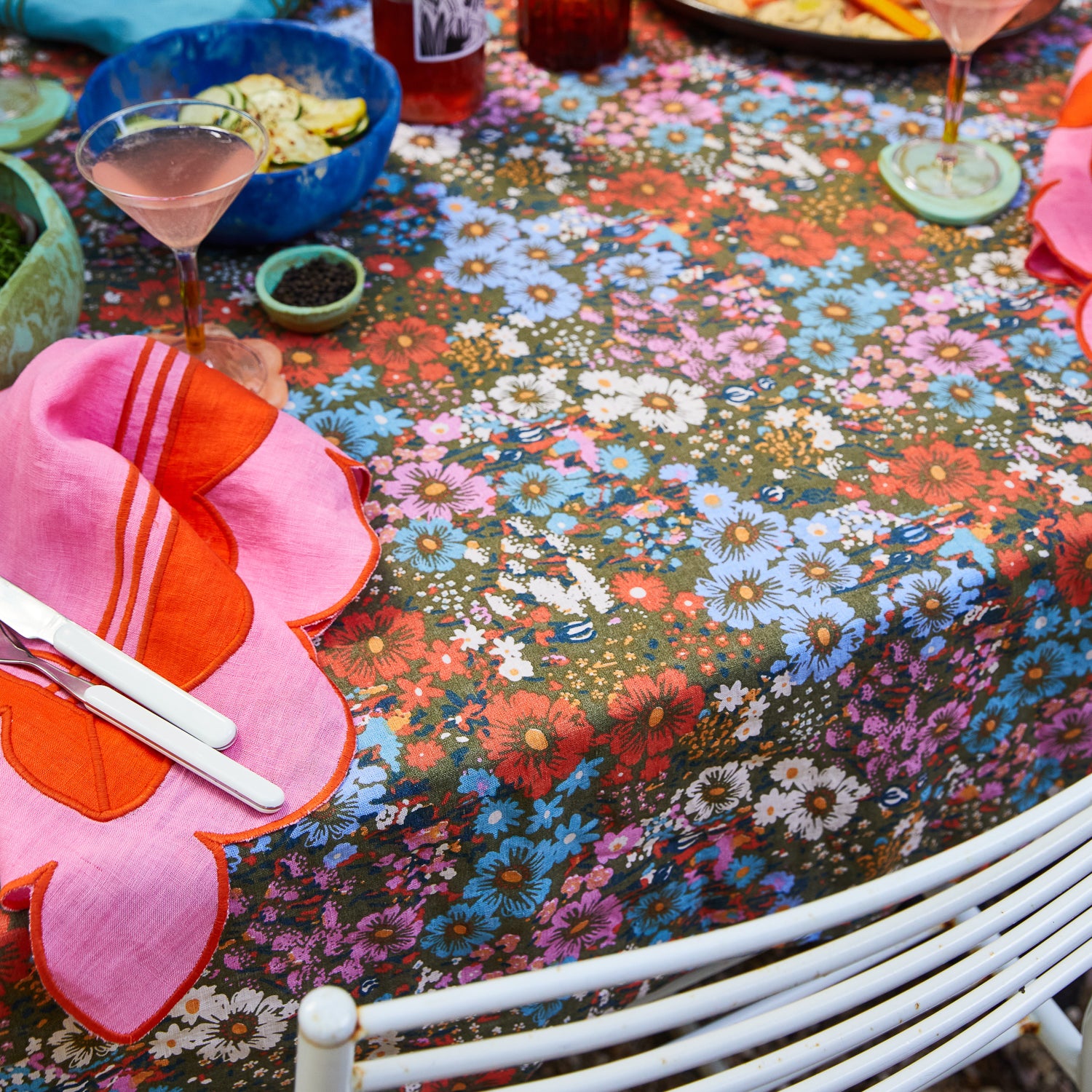 “Designed with joyous gatherings in mind, add the beauty and charm of untamed wildflowers to mealtimes with our Meadow table cloth.” – Phoebe’s Style Notes