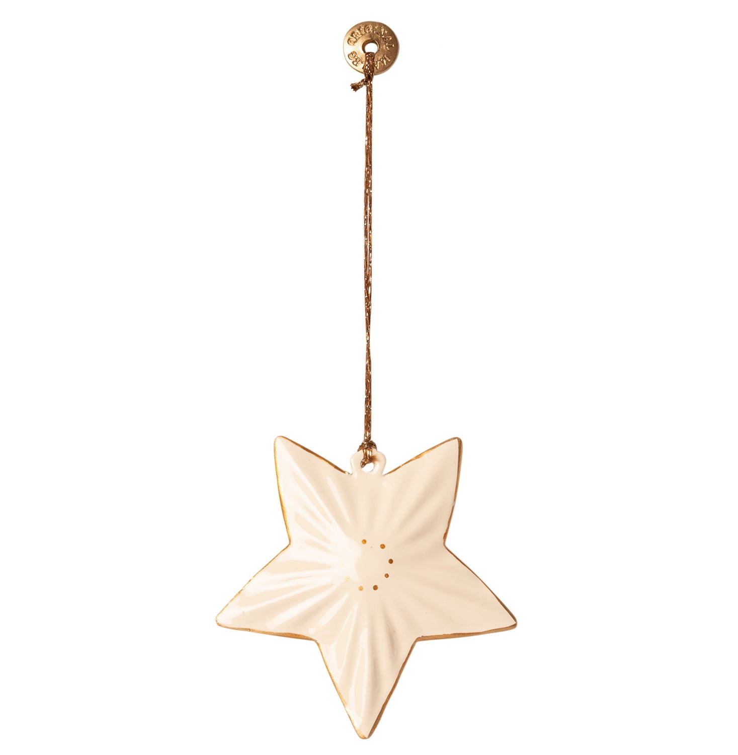 Decorate your home and Christmas tree with Maileg's range of metal ornaments. They are beautiful hand-painted and decorated with festive string. Mix and match to create a personal collection. Measures 6x6cm.
