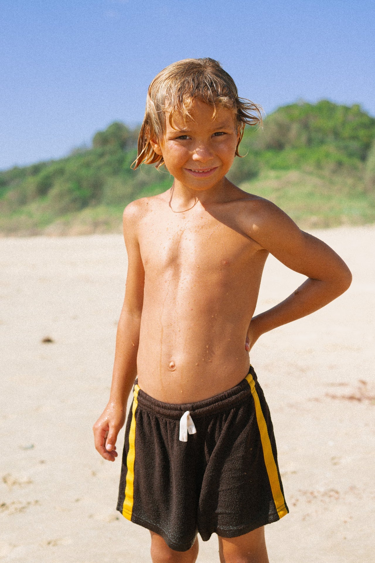 Our favourite shorts now for kids! Ready to rock n roll in the Chocolate Mango combo terry toweling shorts ... Let's keep this short and sweet – these shorts are the bomb. Inspired by the groove of the 70's- they're made of 100% cotton, with a sporty stripe on the side, an elasticated waist with a drawstring, and two side slits to add even more swing to your step. We think these shorts are perfect for any time of the day or night and are so excited to be sharing them with you!