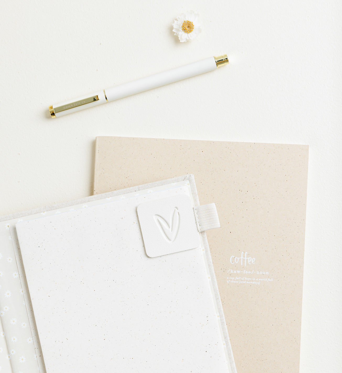 The elasticated pen loop holds most conventional pencil or pen types and sizes, and will suit both pens with a cap or lid and pens without.