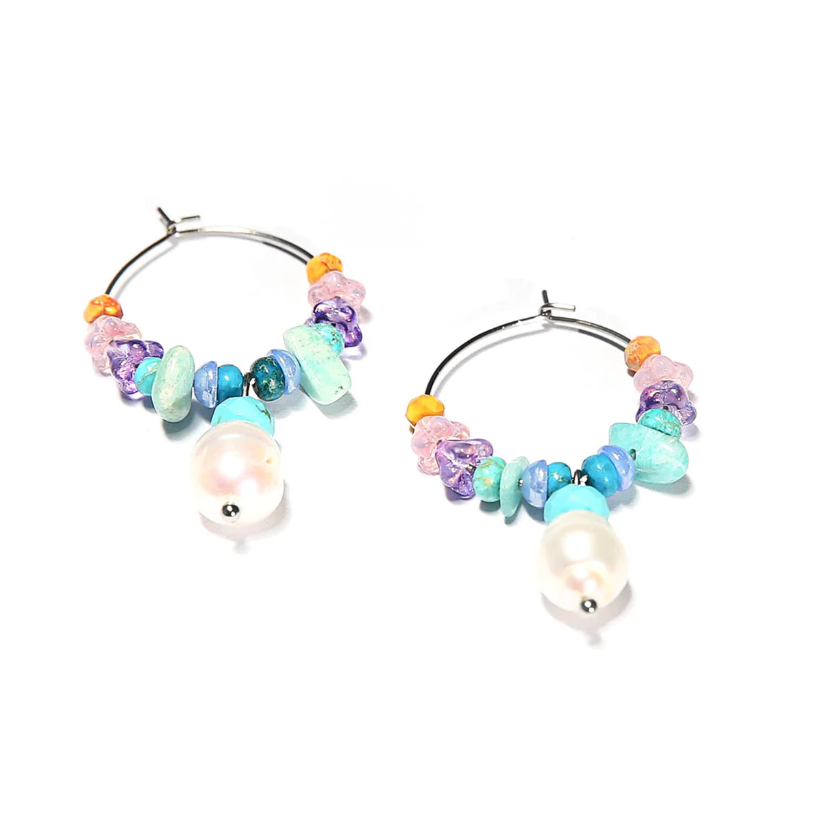 Handmade earrings on surgical steel hoops with Fresh Water Pearls.