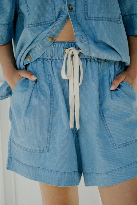 Relaxed Everyday Short Vintage Blue Pinstripe