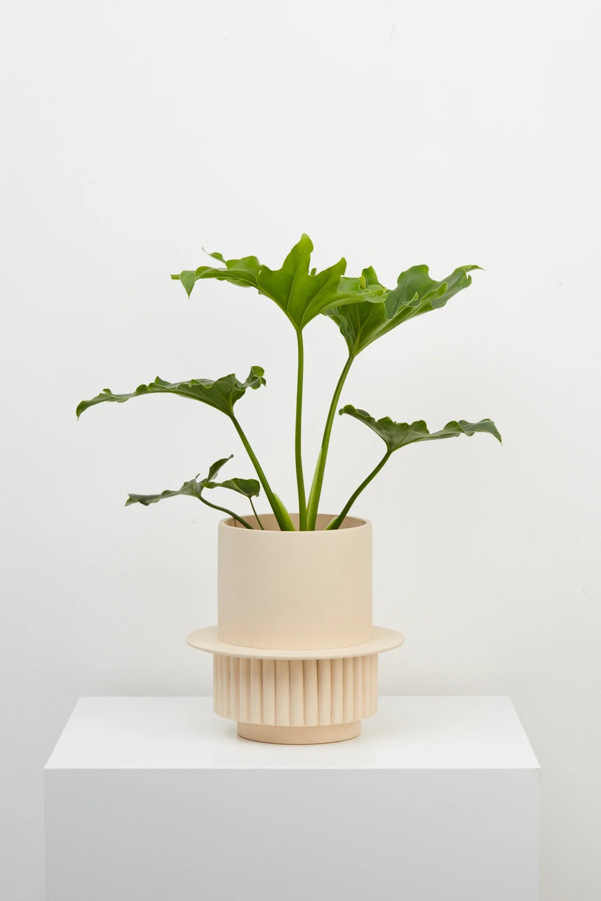 All of Capra Designs' planters are designed with a tray so that you can pot directly into the planter and know that your plant is still experiencing proper drainage.