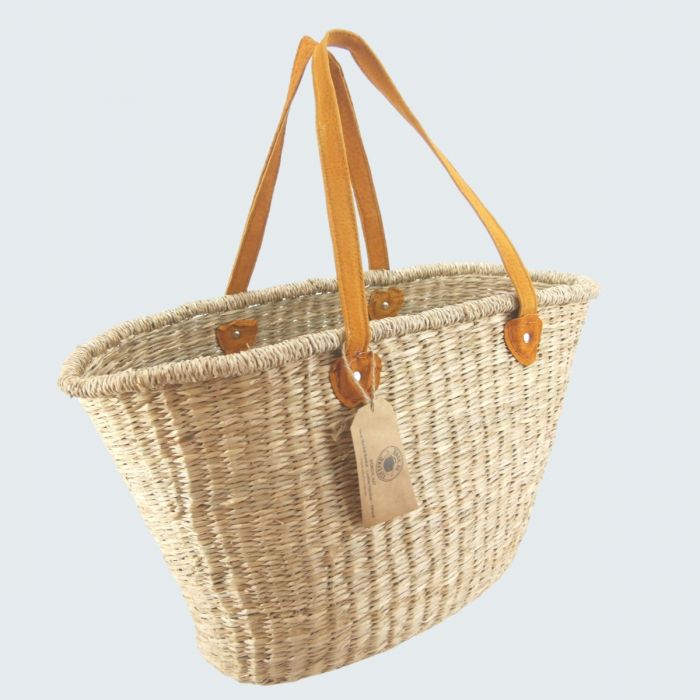 MARKET BASKET - OVAL WITH LONG LEATHER HANDLES