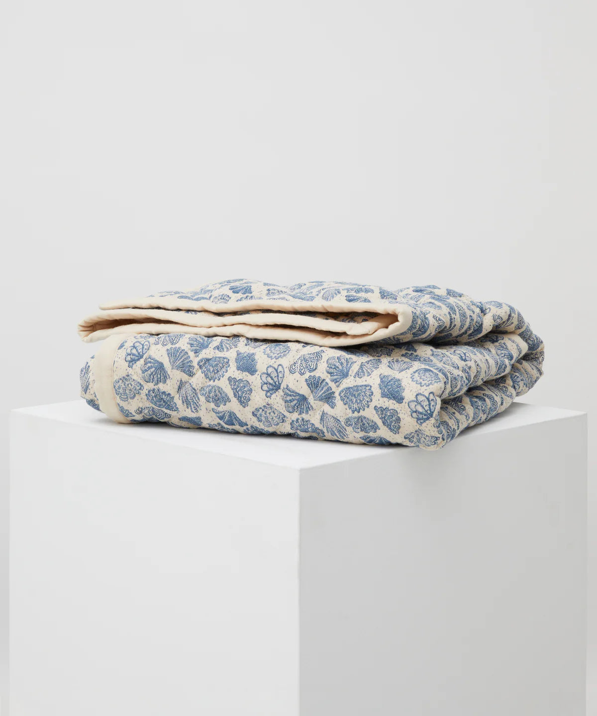 A plush double-sided quilted blanket with a soothing palette of soft blue seashells on one side, and classic cream on the other. Diamond quilting and soft Oeko-Tex Certified Cotton make it gentle on delicate newborn skin, and breathable for all seasons. Made in Portugal.