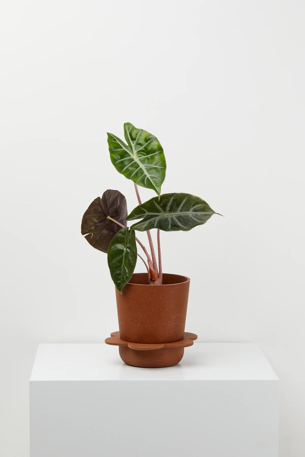 The Spring Pot is perfect for enhancing the look of an Alocasia by showing up its long stems or a Sansevieria by magnifying its foliage.