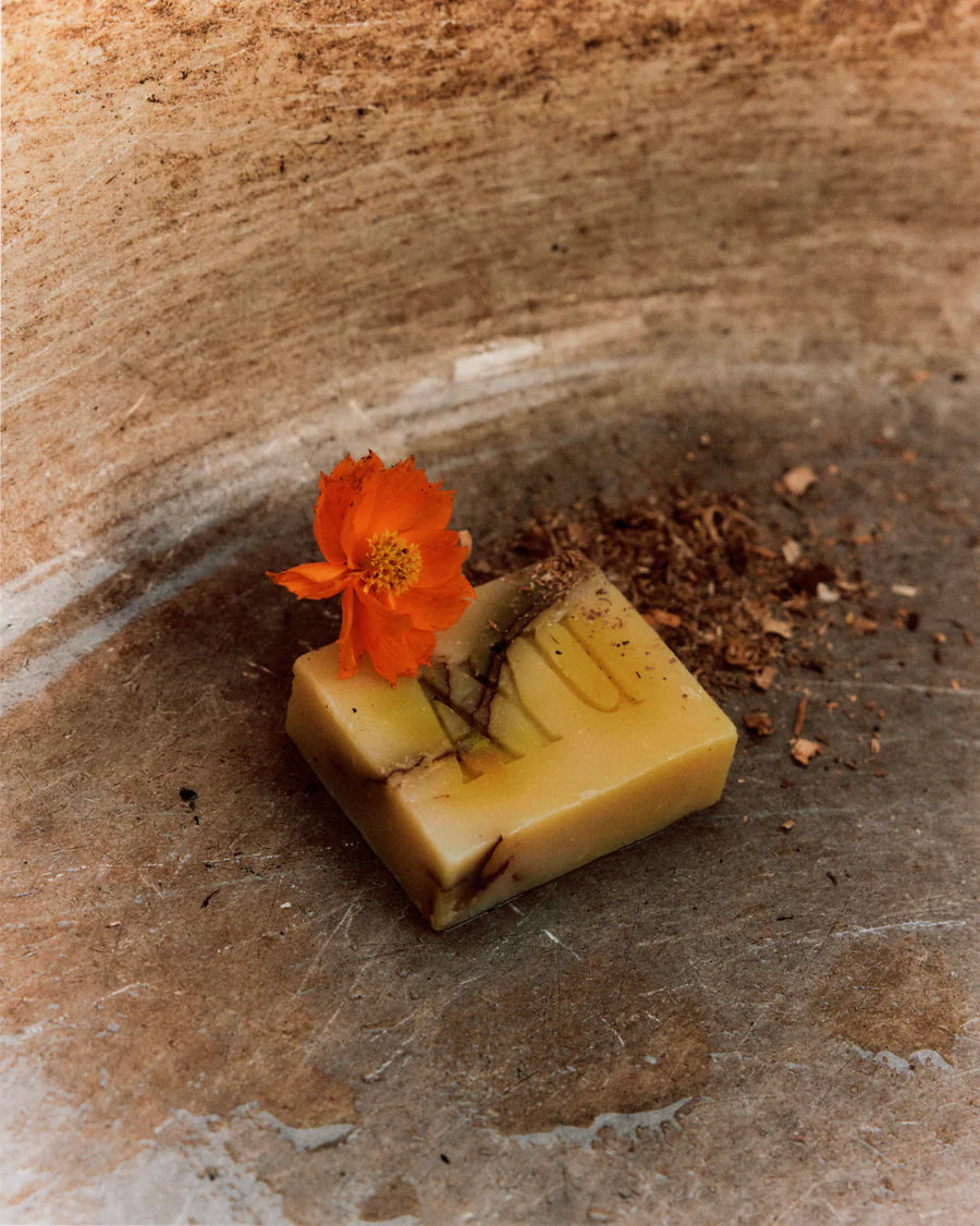 Each bar is infused with an emollient super blend featuring shea butter, vitamin E, wheatgerm oil, aloe vera leaf, mulberry leaf and liquorice root. Hand-crafted using atraditional cold-process method to preserve the natural potency of plant, herb andflower extracts.