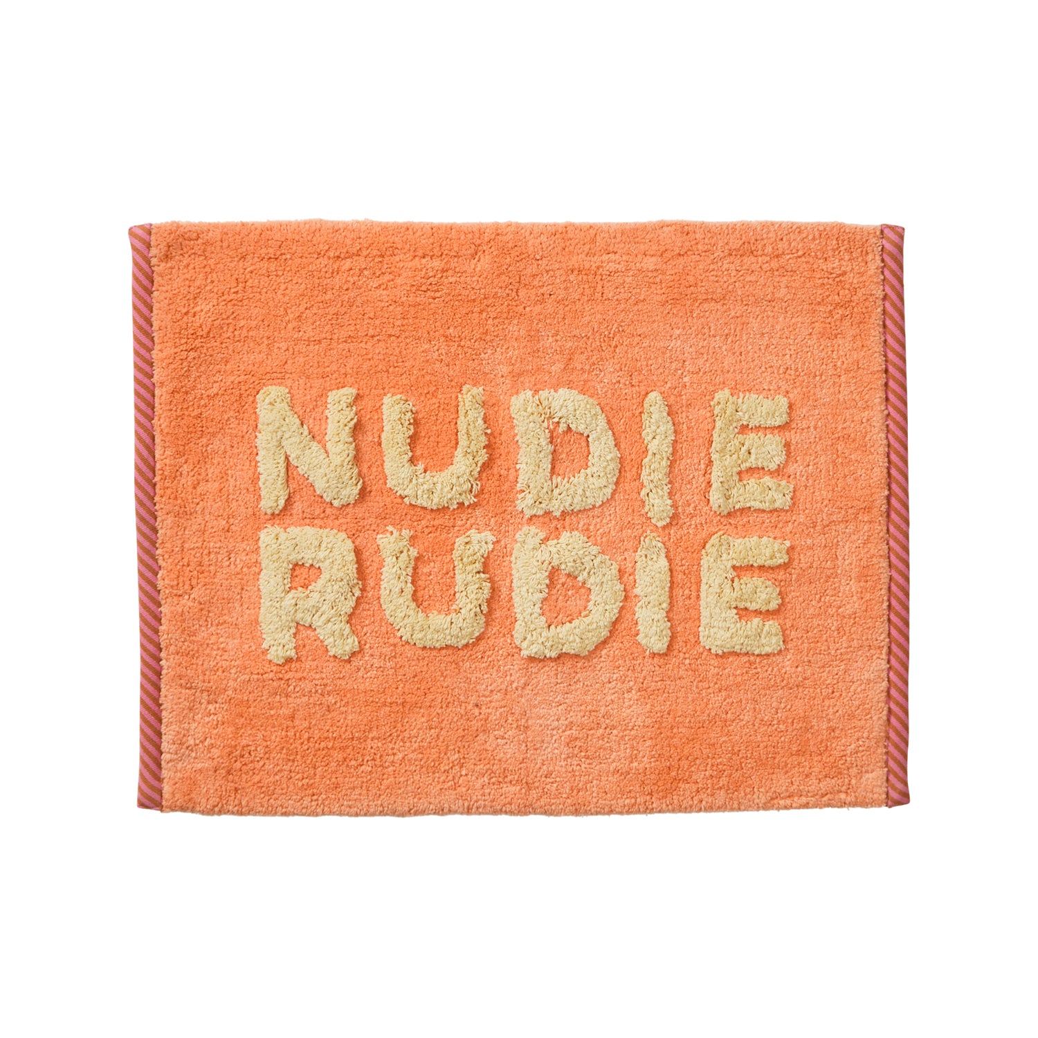 “Our ever-iconic ‘Nudie Rudie’ slogan gets a refresh in soothing desert tones. The iconic design is finished with a contrasting pattern trim for maximalist impact. This practical and playful bath mat is made to bring a smile to your face every time you step into the bathroom, kickstarting your day with a dose of cheer”. – Phoebe’s Style Notes