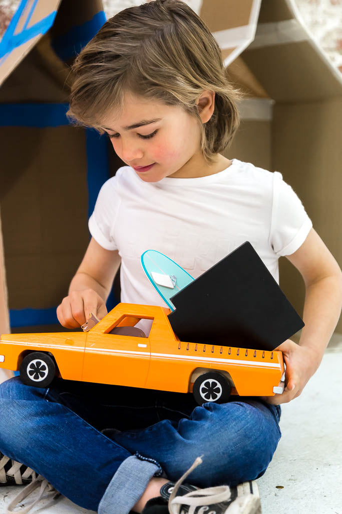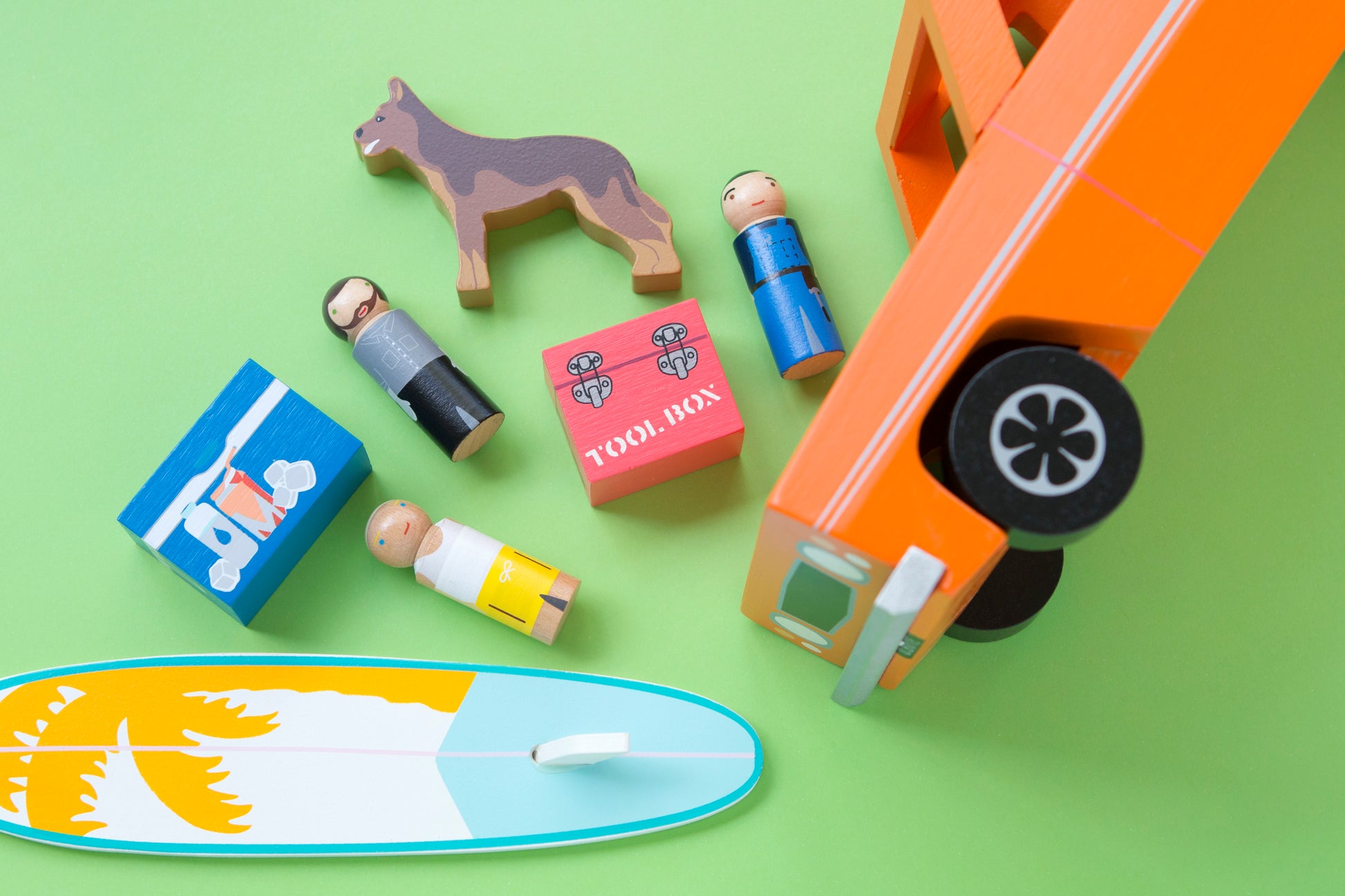 - Complete with x1 Ute and lid, x3 Passengers, x1 Kelpie dog, x1 Esky, x1 Toolbox and x1 Surfboard for pretend play
